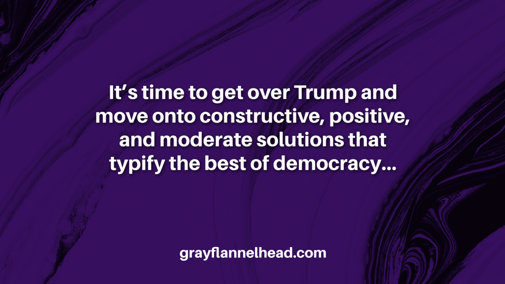 It’s time for MAG-GOT…Make America Great-Get Over Trump. He’s done incredible damage to this country. At the same time, he’s helped expose the seedy underbelly so prevalent in this country—the racists, xenophobes, misogynists, and bigots of every other conceivable stripe—so they can now be seen and dealt with instead of continuing to hide and fester in the darkness. But now, it’s time to get over Trump and move onto constructive, positive, and moderate solutions that typify the best of democracy—meaningful compromise.